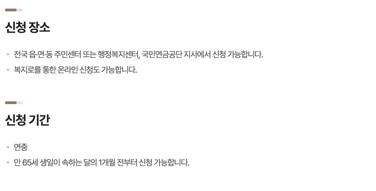 신청 시기는 연중 가능하며 2025년에 만 65세가 되어 새롭게 기초연금을 신청하는 어르신은 생일이 속한 달의 한 달 전부터 신청 가능합니다.